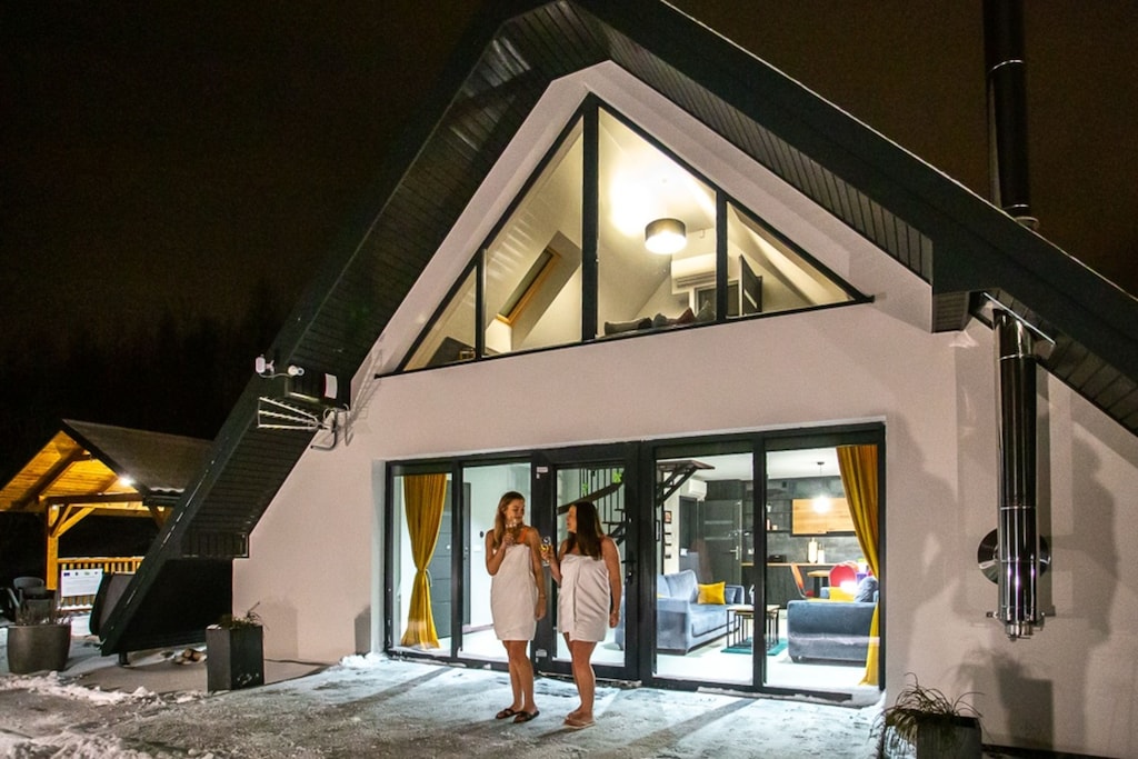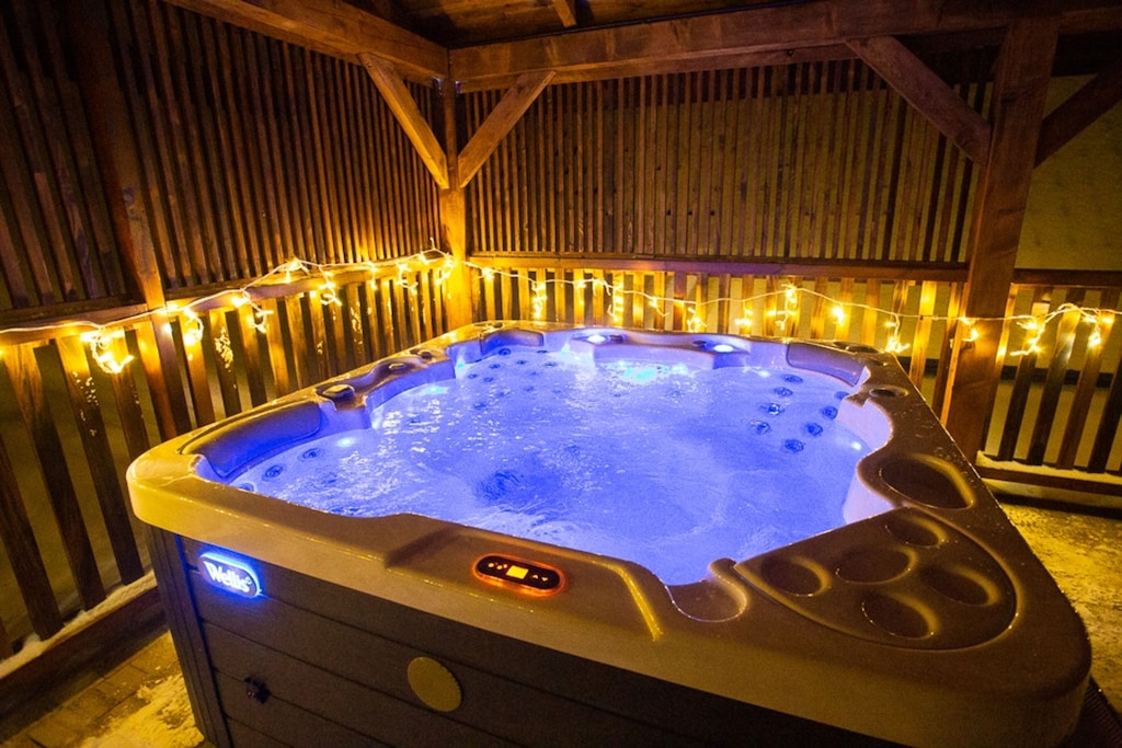 Escape to this serene holiday home nestled in the Subcarpathian mountains, perfect for families or friends seeking a blend of nature and comfort. Enjoy cozy evenings in the spacious living area with a wood stove, or soak in the private 6-person bubble bath under the open sky. The home is equipped with air conditioning, a fully fitted kitchen, and a sunny terrace with BBQ, making it ideal for both relaxation and entertaining.