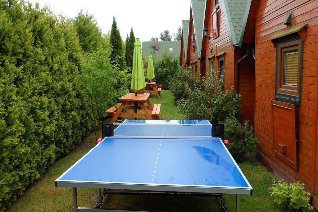 Two-storey holiday houses. On the ground floor there is a living room with a double sofa bed, a table and TV and a bathroom with a shower (there is a washing machine). The living room is connected to a well-equipped kitchen. On the first floor there are 2 bedrooms and an additional toilet. Electric heating. There is a terrace with a set of garden furniture, deck chairs and barbecue equipment. In one of the bedrooms on the first floor there is a balcony. Wireless internet is available.