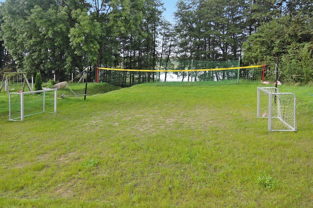Direct access to the lake with natural beach: XXL semi-detached house with space for up to 16 people, just 100 meters from the natural beach for swimming! With its 7 bedrooms, the large house with its bright and friendly interior offers plenty of space and retreat options for everyone. On the beautiful terrace you can have breakfast in a healthy climate, have a barbecue in the evening or just relax and enjoy the tranquility. Two rowing boats and a canoe are available free of charge - ideal for discoveries on the water. Your holiday home is located on the edge of the small village of Troszyn, just 7 kilometers from Wolin.The village is a paradise for nature lovers, fishermen, mushroom pickers and hunters.If you wish, you can buy agricultural products from the farm on the property.