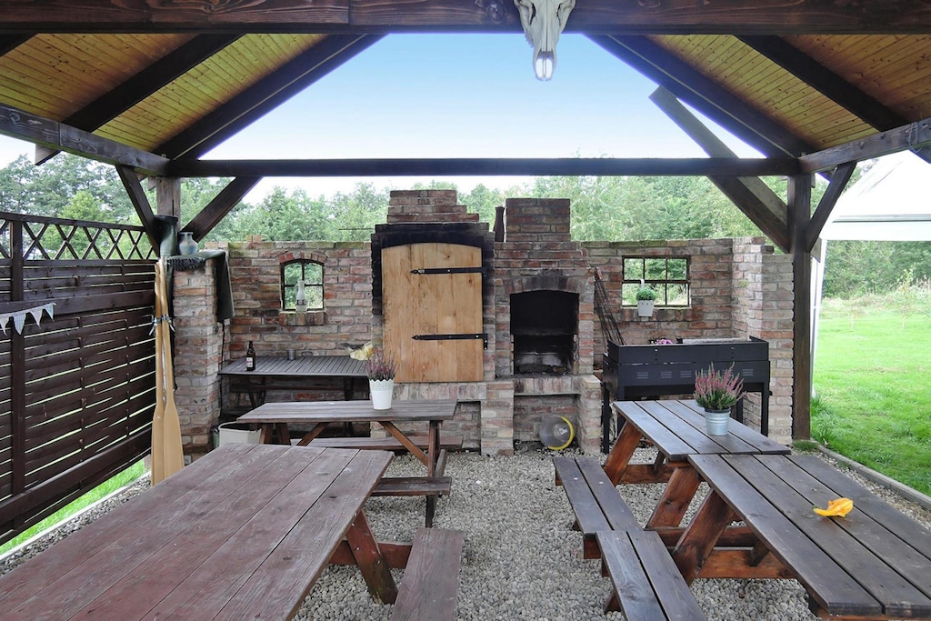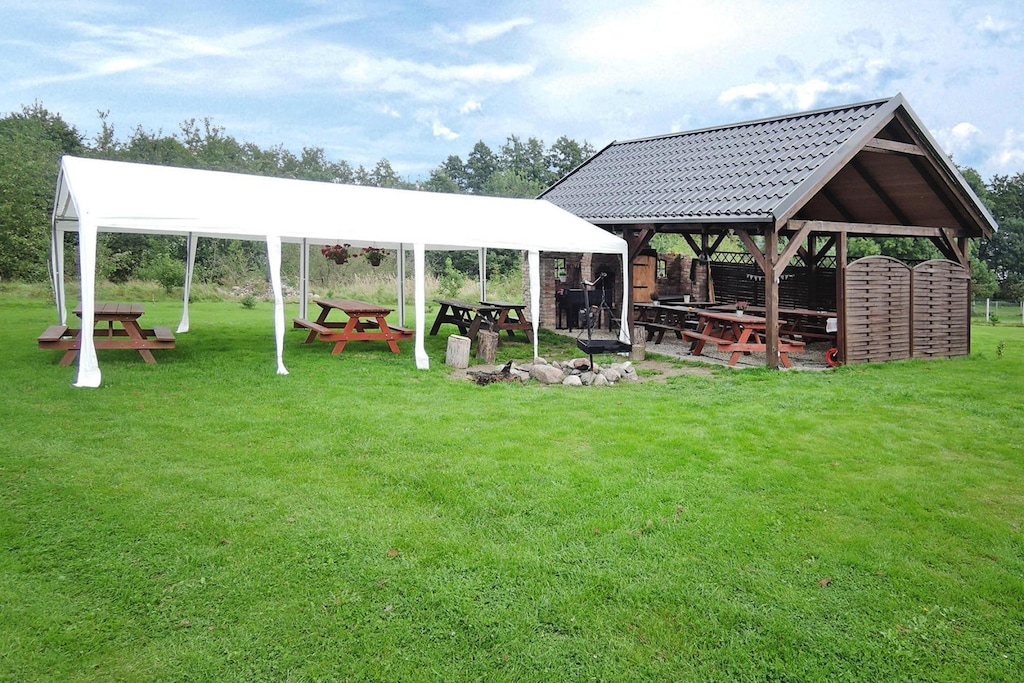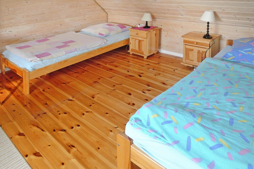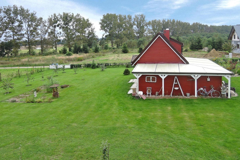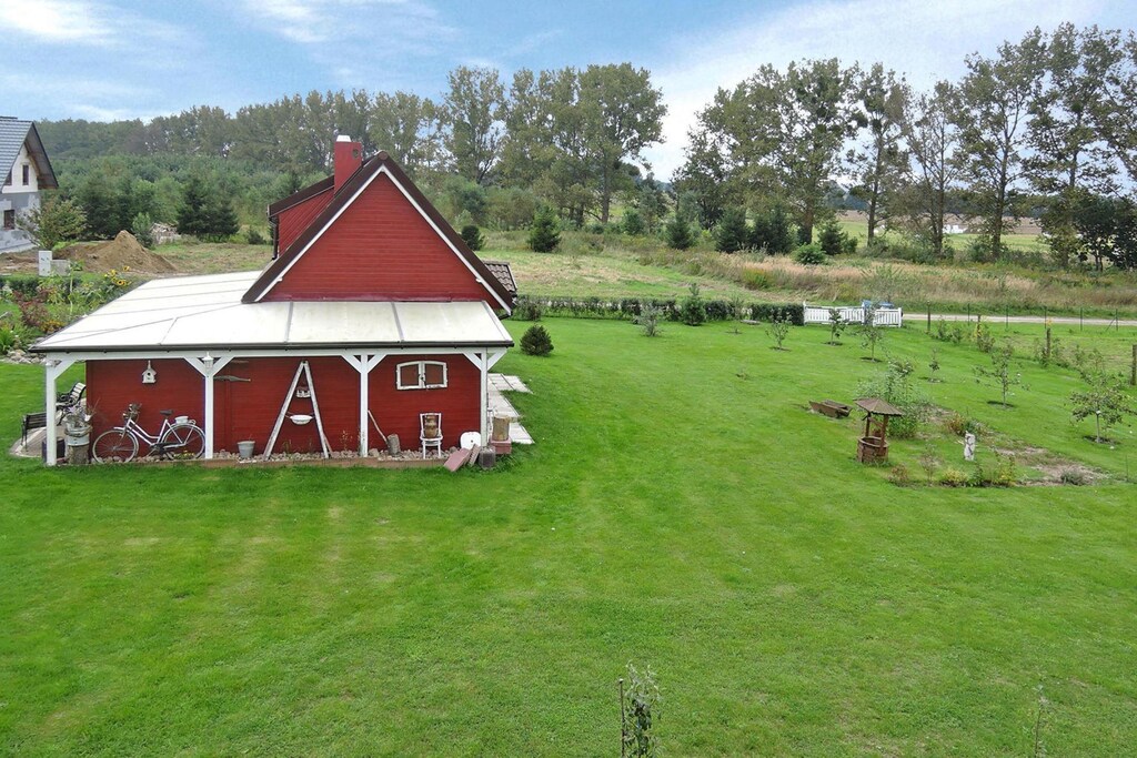 Small family complex with only three holiday homes directly on Lake Ostrowo, on the edge of the small village of Troszyn on the island of Wolin. The lake is particularly rich in fish and is ideal for long days of fishing. A rowing boat, a canoe and bicycles are provided (subject to availability) and are included in the price. If you're more drawn to the Baltic Sea, you only need to take a short 15-mile drive to spend a fun day at the beach on warm, sunny days. The town of Wolin also gave its name to the island of Wolin, which is the largest island in Poland and separates the Szczecin Lagoon from the Baltic Sea. Besides beautiful sandy beaches and sights such as Swinoujscie and Miedzyzdroje, the Wollin National Park is one of the highlights of the island. There is, among other things, a small game park near Mi?Dzyzdroje, where you can see a herd of almost extinct bison.