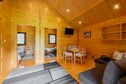 Single-storey holiday cottages, each of them has a covered terrace, where a relaxing set of garden furniture and barbecue equipment awaits. There is a living room combined with a kitchen, 2 separate bedrooms and a bathroom with a shower. The cottage is also equipped with a washing machine. There are deckchairs. Wireless internet is available.