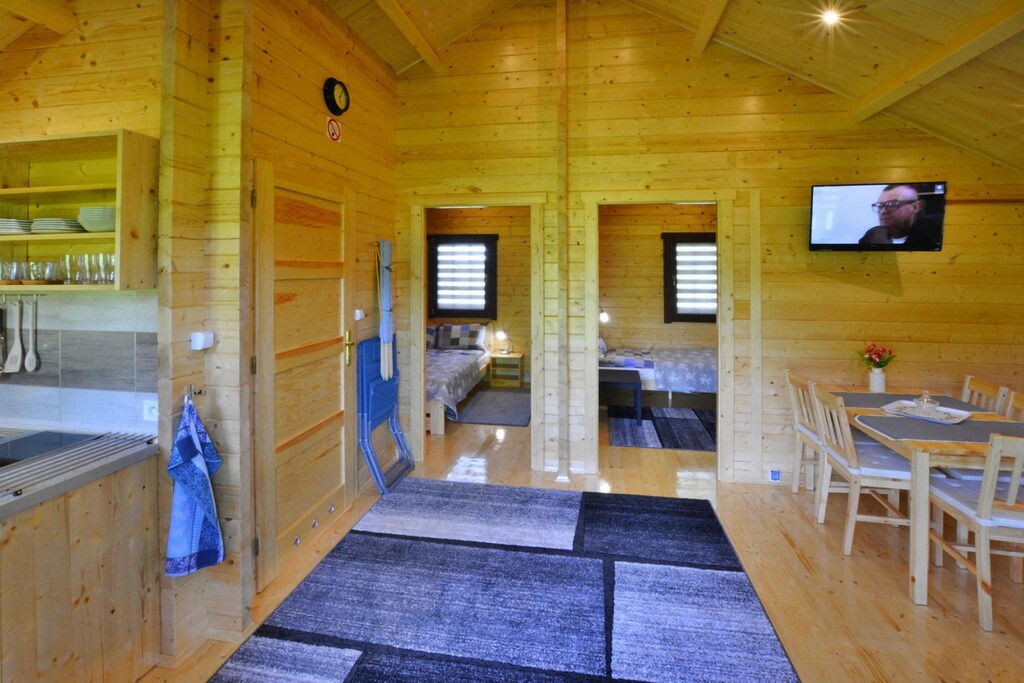 Single-storey holiday cottages, each of them has a covered terrace, where a relaxing set of garden furniture and barbecue equipment awaits. There is a living room combined with a kitchen, 2 separate bedrooms and a bathroom with a shower. The cottage is also equipped with a washing machine. There are deckchairs. Wireless internet is available.