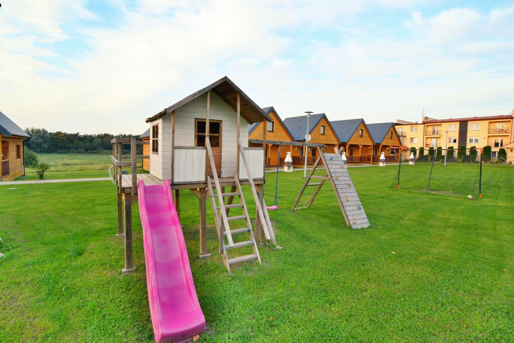 On the premises of the resort there is a parking lot and a set of fitness equipment. For the youngest there is a playground with a trampoline, sandbox, slide and swing. There is a sports field.