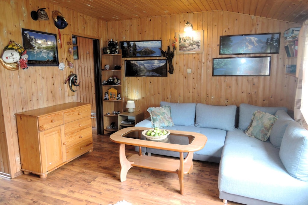 Very well-kept small bungalow with terrace and beautiful property; Here you can relax wonderfully in the fresh air. A comfortable seating area, which can be converted into a sofa bed if necessary, and a bedroom with two beds offer space for a total of four people.