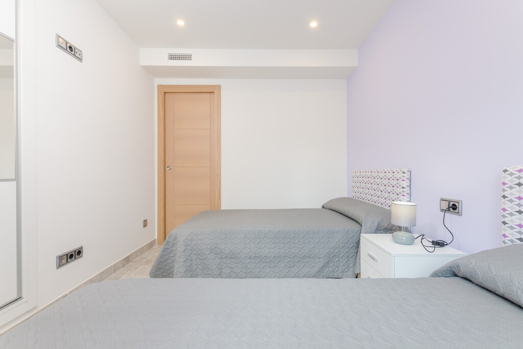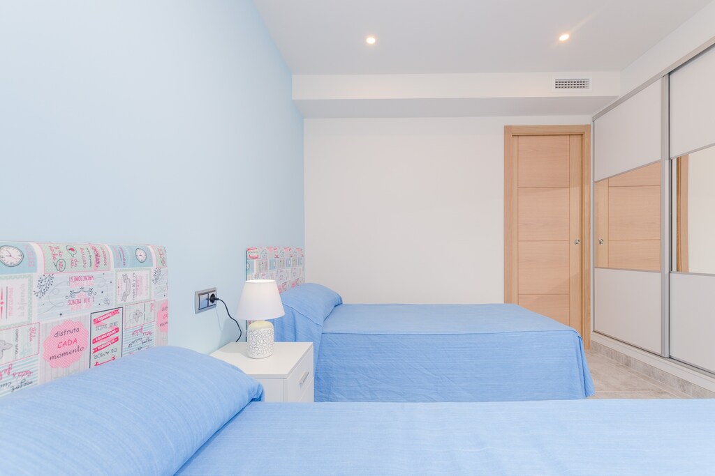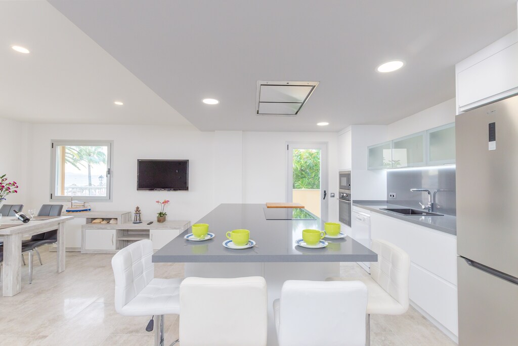 In the terrace you can enjoy the incomparable views to the sea and mountains while tasting a delicious breakfast before heading to the beach. You will reach it from the shared lawn area of the building and you will enjoy the sun directly in the beach, spreading your towel on the sand or the rental sunbeds. Just imagine what a privilege to take a cool dip in the sea only a few steps away!