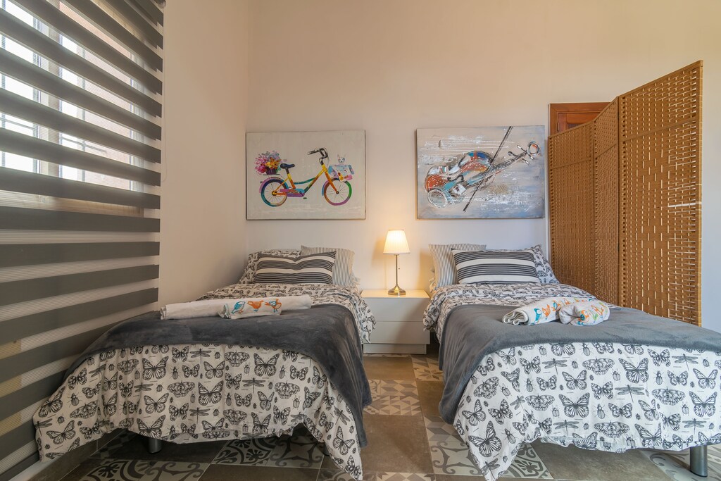 The little village of Ariany is full of charm with a lovely rural style. Its surroundings are plenty of fertile fields and farmers that make them to become such an idyllic landscape for long walks exploring the beauty of the place, or for practising hiking or biking. On the horizon rises the Puig de Bonany with 317 meters from where you can see much of the island as the prodigious Sierra de Tramuntana, Sierra de Levante, the so-called Pla de Mallorca and the Alcúdia bay. If, on the other hand, youu like the beach, the closest one is in Son Serra de Marina, a very quiet and familiar one.