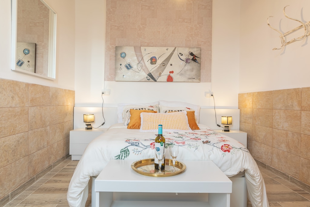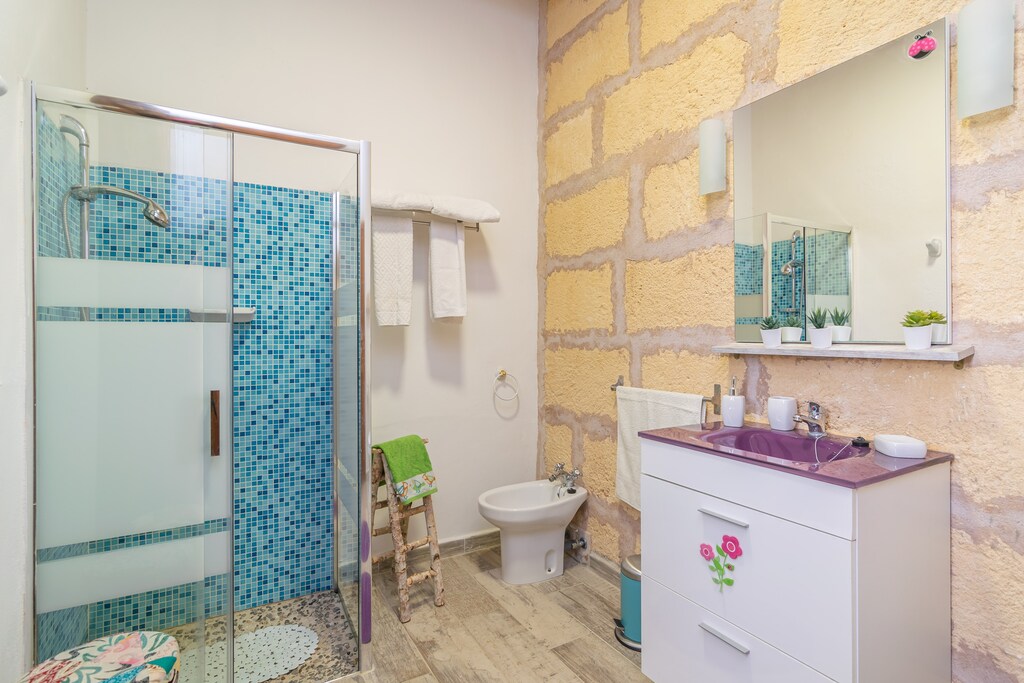 A carefully laid out path leads from the garden to a wonderful barbecue area, equipped with a large table and some basic appliances for you to enjoy a pleasant evening. Next to this, from a charming little terrace, you can access the interior of the house to a colourful and comfortable living room with satellite TV, open to the modern ceramic hob kitchen. There is a bathroom with a shower and a total of three bedrooms with wardrobes. One of them has a double bed, air conditioning, space for a cot and a high chair, and direct access to the garden. The second also has two single beds, a ceiling fan, and an en-suite bathroom with a shower. The last one, on the other hand, has a double bed and air conditioning. Please note that one of the bedrooms is a walk-through room and does not offer privacy.