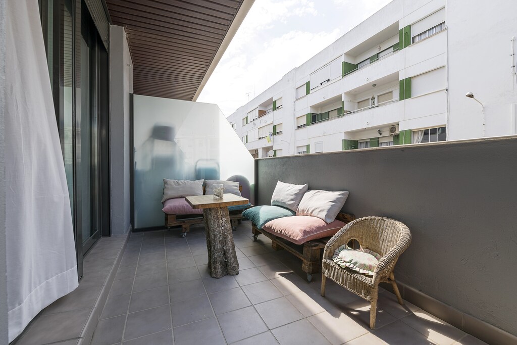 After a day at the beach or a walk along the coast, the best plan is to relax and feel at home. On the terrace of the apartment you can have a drink with your companions or just chat and spend a nice evening. The apartment is located on the second floor of a building with elevator, so it has neighbors and its privacy is partial.