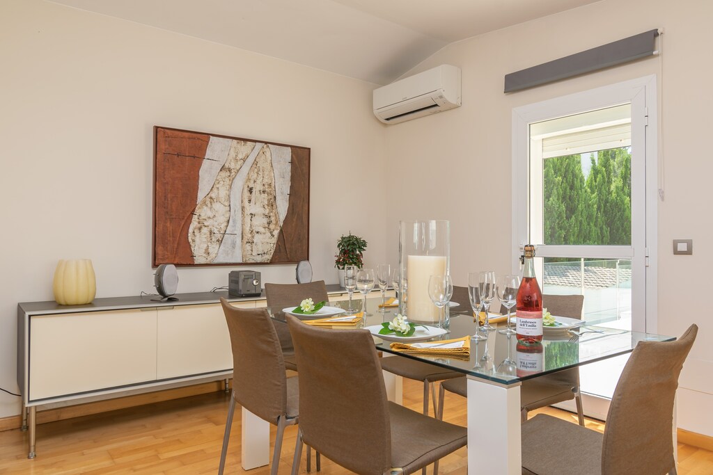 L'area soggiorno-pranzo è davvero accogliente, Abbiamo goduto di cene in famiglia al grande tavolo, e l'aria condizionata è stata una salvezza durante i pomeriggi caldi,