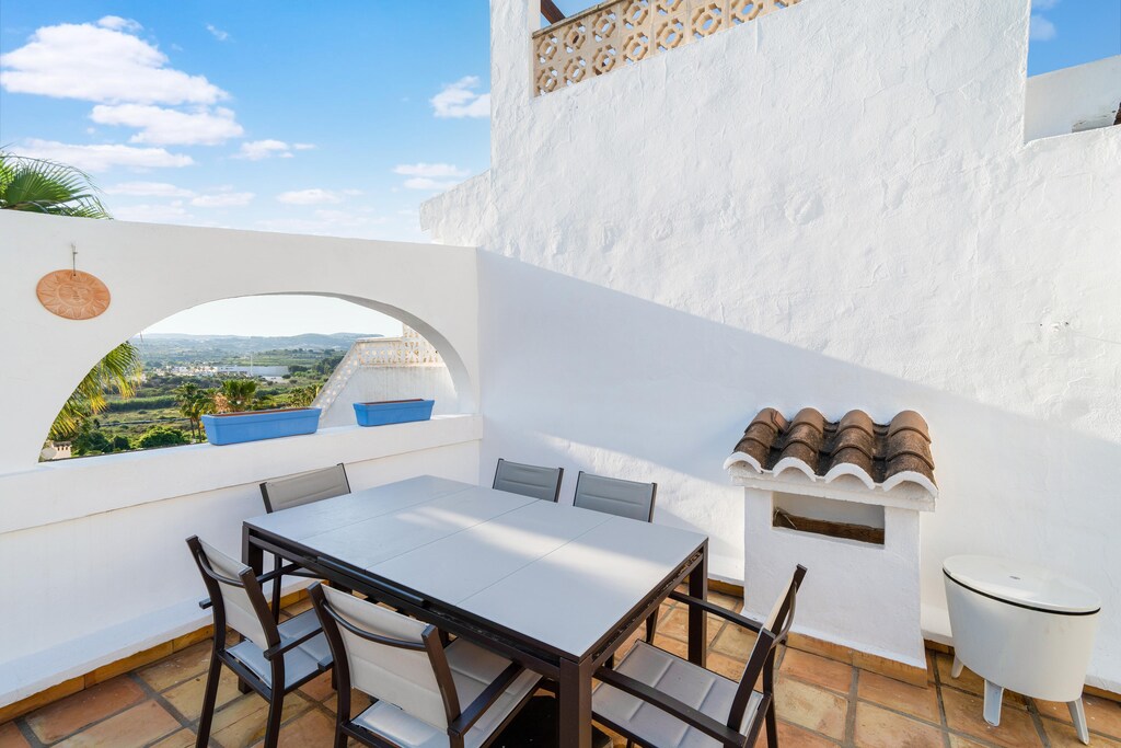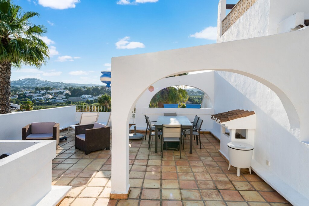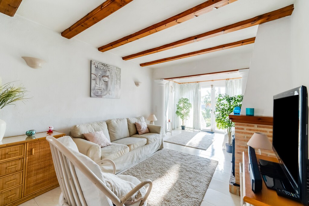 An optional utilities and service fee of EUR 90,00 will be charged before your arrival. Details are given below.<br> Stay in this Spanish Bungalow with a beautiful living room with closed kitchen, cosy furnishings with flat screen (with an app you can watch all the channels you have at home) and a wood stove, you can cool and heat the house with air conditioning. There is sun all day on the roof terrace. There is a large swimming pool with sun beds that belongs to this residential community, which you can reach from a staircase on the side of the bungalow. The beach is 2 km away, there is a large supermarket / several shops, restaurants and bars within walking distance. In the village you will find shops, bars and restaurants, but these are actually spread over the whole of Moraira. You can do all the necessary shopping in the supermarket within walking distance. The kitchen is fully equipped to prepare delicious meals. In the private garden, you can relax while enjoying barbecue meals and drinks. There is a parking space available for your car. About Belvilla: When you stay in a Belvilla home, you can rest assured of a unique holiday home in ideal surroundings at an attractive price. The portfolio of accommodations consists of more than 40,000-holiday homes in 20 European countries. Interested in a weekend getaway, a summer or winter sports holiday, or simply a short break? Do you prefer the coast, the countryside or the mountains? Whatever your preference, there is a Belvilla home to meet your needs, from a cosy gîte for two to a castle big enough for the entire family, from an apartment in the heart of Rome to a cabin in the middle of nowhere, from a simple tree house to a luxury dream villa and from close to home to the other side of Europe. A Belvilla home gives you the freedom to enjoy breakfast in your pyjamas or continue a good conversation into the morning hours without having to worry about the bar's closing time. Prepare gourmet meals with fresh local ingredients in your own kitchen and take advantage of having your own swimming pool to do as many cannonballs as you want! In other words, you can enjoy complete privacy in your home away from home. <br><b> Optional Utilities & Service Package </b><br><b> An optional utilities and service package of EUR 90,00 </b> can be selected prior to your arrival. You will receive a separate communication with the payment link should you wish to include it.<br>This package ensures a seamless stay and conveniently covers services such as final cleaning, utility consumption, service support, and protection against minor damages or incidental costs during your stay.<br>Guests who prefer may manage these services independently, provided the property is returned in good order at check-out.