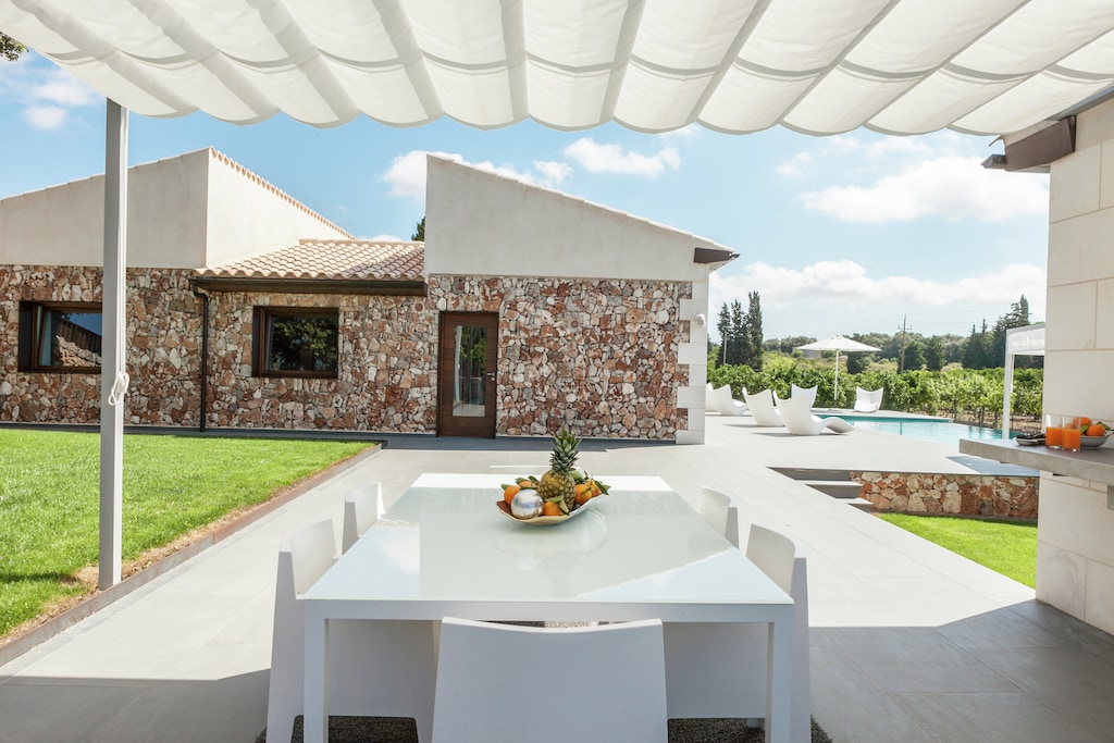 This luxurious holiday villa on the outskirts of the village of Muro on Mallorca has a view of the Sierra de Tramontana and is stylishly furnished. There are 3 bedrooms that can accommodate a total of 7 people. This is the ideal option for a holiday in the sun with a large family.