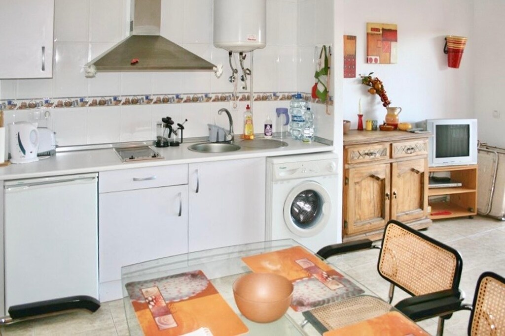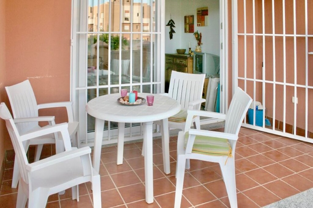 Apartment 400 meters from the beach, located on the ground floor with a large and adjustable private terrace. It has everything you need for your holidays or just a few days of relaxation, capacity for 4 people, a full bathroom, living room, small but very comfortable kitchen to cook your favorite dishes and air conditioning. Pets are accepted, €30 / stay. the urbanization can be parked for free. Less than 5 minutes walk from the best beaches of Roquetas, beach bars, supermarkets, restaurants and golf courses.