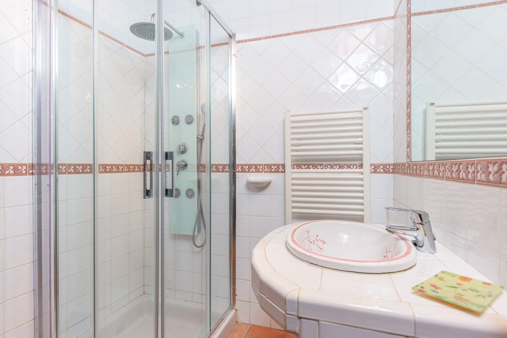 The estate, with its rustic yet modernized charm, offers a cozy space spread over two floors. On the ground floor, a spacious living-dining room with Smart TV invites you to relax and enjoy leisure time. The independent kitchen, equipped with a ceramic hob and all necessary amenities, including a dishwasher for added convenience, is the perfect place to prepare delicious dishes. Also on this floor, there's a room with a double bed, wardrobe, and en-suite bathroom with shower, offering privacy and comfort. An additional bathroom completes this level. Upstairs, you'll find four more bedrooms, each with two single beds, wardrobe, and en-suite bathroom. Three of these bathrooms have showers, while one has a bathtub, ensuring maximum comfort for guests. For guests' convenience, there's a washing machine, iron, and ironing board. If traveling with a baby, we can provide a crib and high chair.