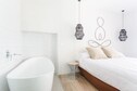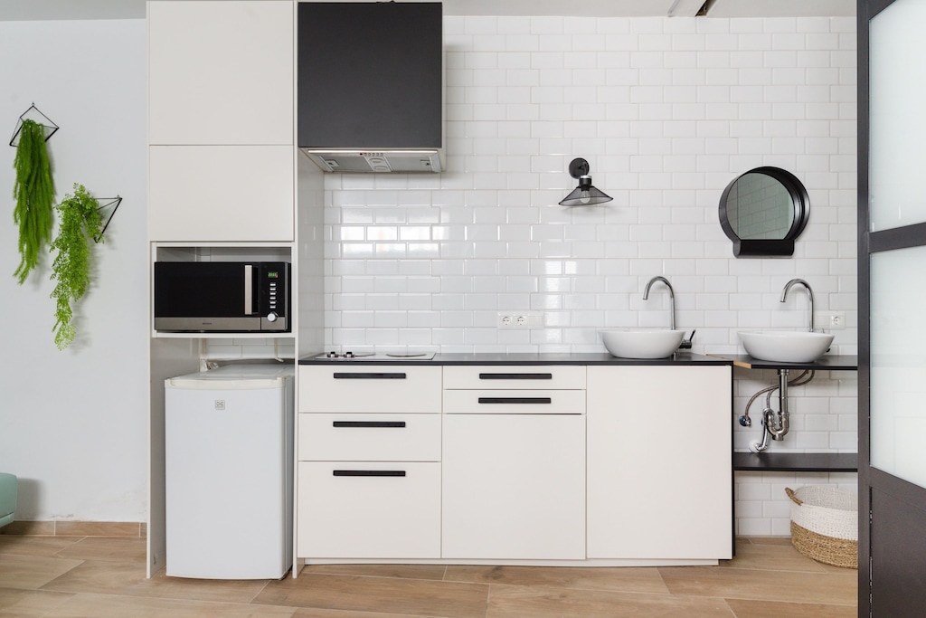There is a modular kitchen in every room. On the first floor we have the second room that has a Roman bathtub for 2, a sofa bed, smart TV, Wi-Fi, a 180x200 bed, and a private bathroom.