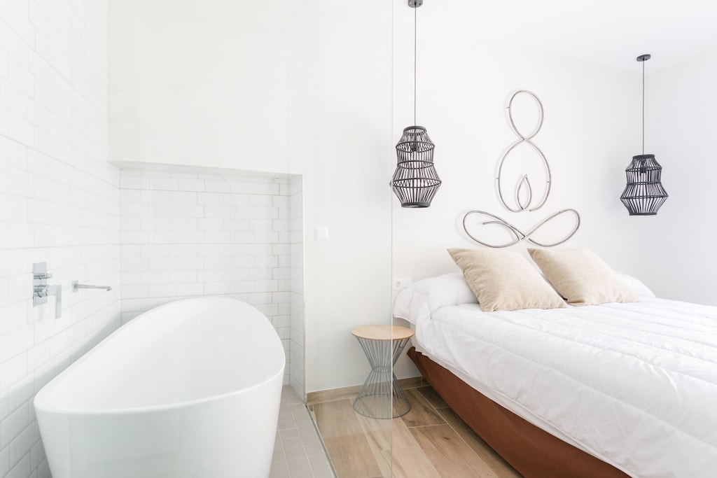 The holiday home in Tavernes de la Valldigna is made up of 2 independent flats that share common spaces. It is ideal for 2 families. It is located in the old quarter of the town, close to all services, in a strategic place to enjoy both the mountains and the beach. The house has a room with a hammam to be able to share, both as a couple and as a group. The roof the house has 2 terraces. On the first terrace, a jacuzzi has been installed with a waterfall effect shower in which, although it is outside, it maintains the privacy of the moment. On the second terrace there is a barbecue, chromotherapy lighting and terrace furniture, from which you can see a landscape between the old town and the mountains.