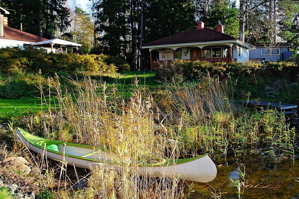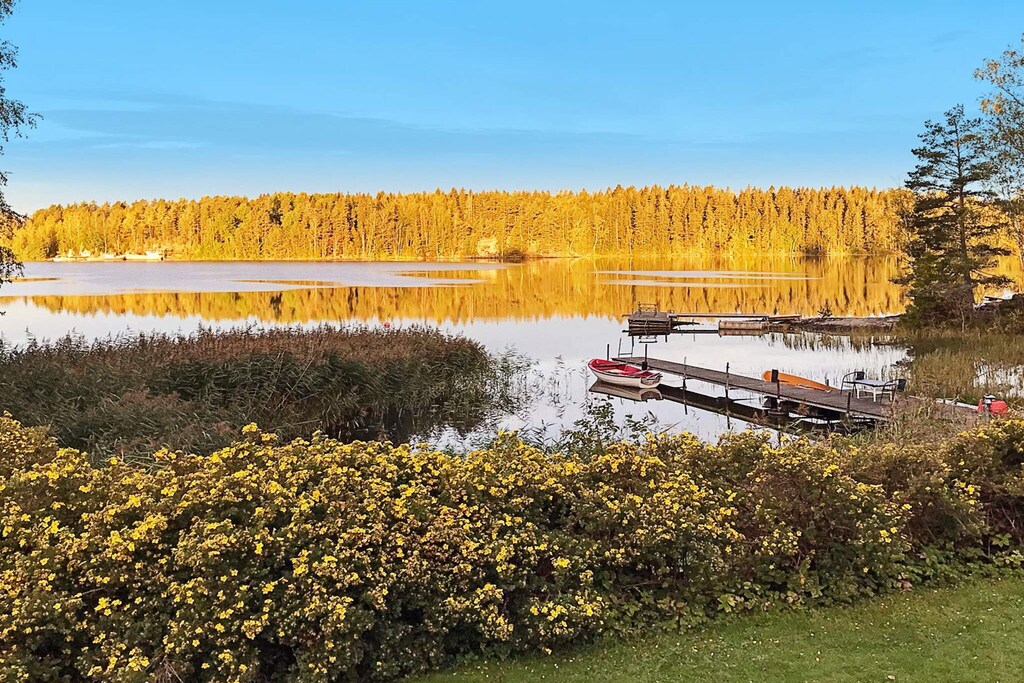 On the terrace of this charming wooden house you can sit and enjoy a cup of coffee and look out over the lake just a few meters away. If you want to go out on the lake instead, you can do this with the canoe or rowing boat that is included in the rent. So take the opportunity to take advantage of the great location. You are met by an open floor plan with living room and kitchen inside the house. Here is a sofa bed and a stove that you can snuggle up to if the cold comes over you. In the bedroom there is a double bed and through the next door a bathroom with a glazed shower. The kitchen has: stove, oven, microwave, fridge, freezer, coffee maker, electric beater, toaster, etc. There is infrared heating on the terrace. This holiday home is located about two kilometers northwest of Bengtfors on a peninsula, right by Lelång. Bengtfors is located between the two lakes Lelång and Bengtsbrohüljen. The lakes are connected there by a lock and are part of the Dalsland Canal. In Bengtsfors you can visit the largest open-air museum in western Sweden, namely Gammelgården. Directly next door is Halmens Hus, the former center and today's museum for straw weaving. Sweden's countryside offers a variety of options for spending your holiday. Long walks, bike or boat trips, picking berries and mushrooms - you will certainly not be bored. This house is not suitable for people with reduced mobility. Warm welcome! A few hundred meters from this house you will find house: 48882. Perfect if you are a larger group that wants to stay close to each other. When booking bed linen, towels are also included.
