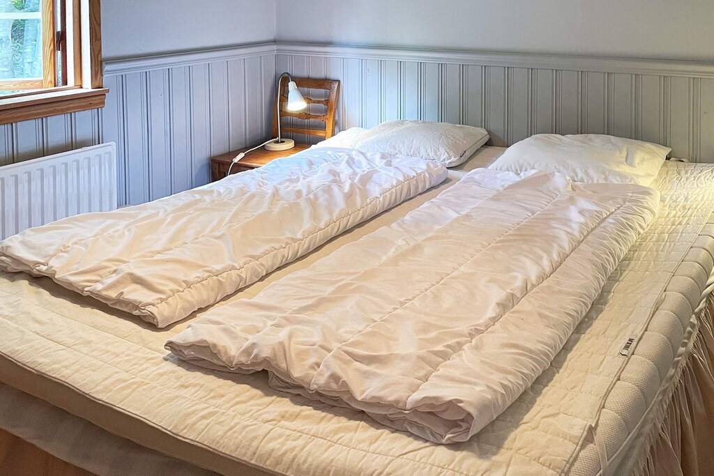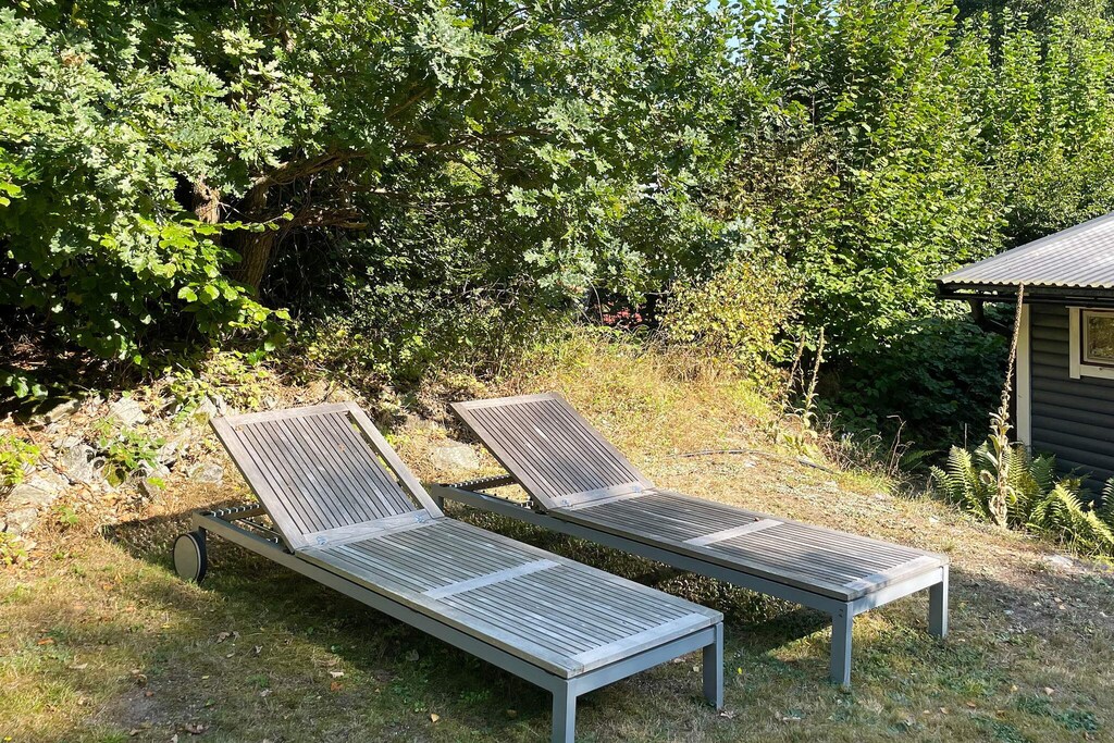 On a leafy lovely nature plot, this lovely cottage is just a stone's throw from the sea. Here you can hike in Blekinge's beautiful beech forests while spending a day at the sea. The cottage is located in a smaller cottage area but is protected from transparency with a nice patio at the back. A 200 meters walk from the cottage you can swim and it also includes a canoe when you rent the cottage which you are free to dispose of. On the plot there is a small grassfield for playing football and there is also a trampoline with nets. Bikes are available to borrow. The cottage has an airy living room with high ceilings which has a large sofa, wood burning stove and TV. Ideal for cozy summer evenings indoors. In the kitchen there are all possible amenities and a kitchen table for 6 people. There are two bedrooms. One bedroom has a double bed and the other has a bunk bed as well as a sofa bed for an extra person. In this bedroom there is also a TV with Playstation 3. The toilet has a shower and also a washing machine. The cottage has two balconies. One on the front with a roof over, where there is also a grill, and the one on the back in a protected position. If you are a larger company you can also sleep 2 people in a small annex that is located on the site. Here is a bunk bed and a sofa bed where you can choose which beds you want to use. Maximum 7 people in total. If you want to go on an excursion, the archipelago traffic is only a 10 minute drive away. Here you can island-luff from island to island. From Järnavik you can eg. take the ferry to beautiful Tjärö. At the Eriksberg Hotel & Nature Reserve, you can take your own car on a wild safari. Blekinge is booming by local food producers and eateries to visit. Visit farm shops, cafes and restaurants that have the greatest respect for our present day. If you want to stay outdoors, there is a whole network of trails for cycling, canoeing and hiking with the app to help you navigate properly. Warm welcome!