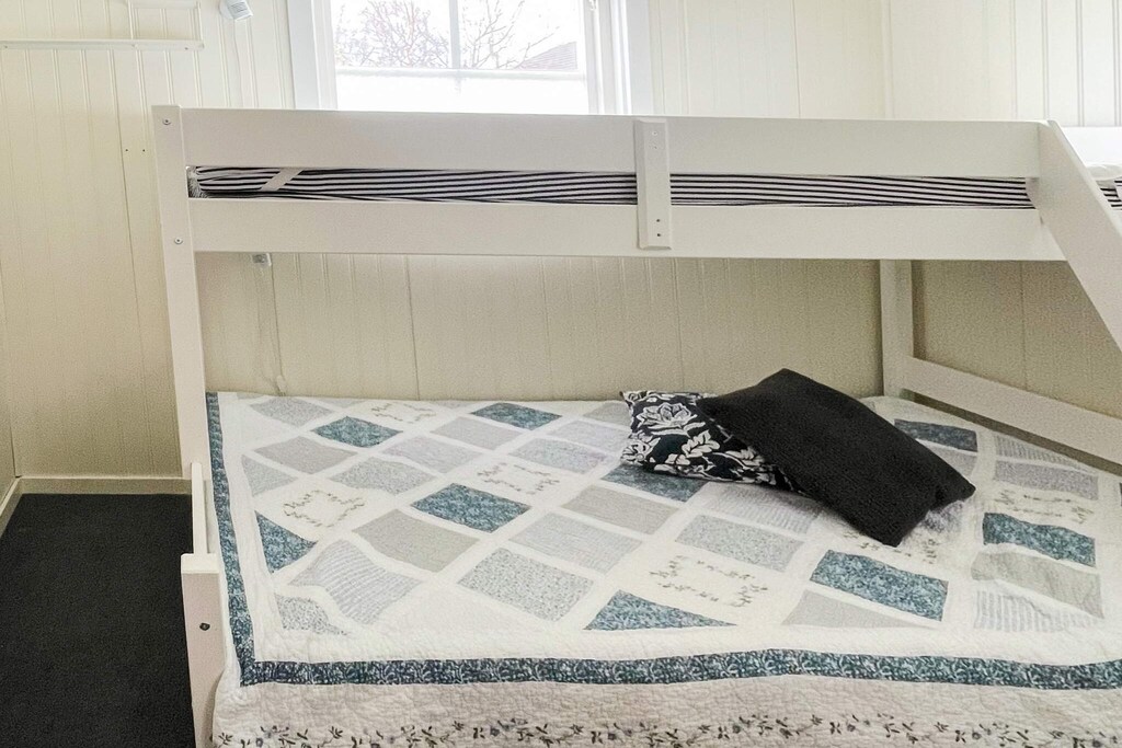 Lovely holiday home to really enjoy on Joels udde where you are close to both the sea, the beach and the nice restaurants, ice cream cafes and shopping that Färjestaden has to offer. The house is not rented out to youth groups. It is not permitted to charge electric cars. The cabin must be cleaned by the guest before departure. Bed linen and towels are brought by the guest. The house is located in a nice cottage area with a high holiday feeling. It is walking distance to the fine, shallow sandy beach where you can enjoy a refreshing dip and the beautiful view of the Öland Bridge in the distance. There is also a larger playground and beach volleyball court here. You have a wonderful garden with a nice patio deck where you can enjoy sunny days. On the nice covered veranda you can enjoy a good piece of food. The house has an open living room with a couch in front of the TV or the beautiful fireplace where you can light candles. Burning in the fireplace is not permitted. Here there is a beautiful dining area that leads into the open kitchen where you have a dishwasher and most everything you might need. You sleep in two bedrooms. One with a double bed, In the second room with a curtain there is a bunk bed with a 90cm bed at the top and a 120cm bed at the bottom. The bathroom has a sink, toilet and shower cubicle. There are two bicycles available which guests are responsible for. Here you are really close to Öland's Zoo, which with its animals, water park and amusement park is usually popular with children. If you want to enjoy a day at the spa, Skansen Spa is nearby. Here you are perfectly located to be able to make nice excursions both on Öland and the mainland.