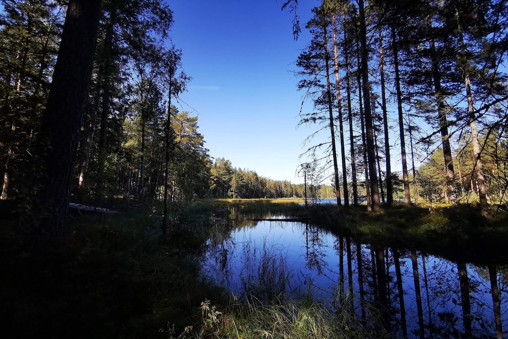 With miles of views of Bergslagen's nature, this modern and comfortable cottage is great for those looking for a relaxing holiday spot. The cottage is modern and completely renovated. From the entrance hall, with plenty of space for outerwear and wardrobes, you will enter the main cabin where you will find a living area with cozy sofa and comfortable warming stove. In the second part of the main cabin is the dining area and kitchen area. Two bedrooms, a double bed and 2 bunk beds in the other room. The spacious and fresh bathroom is adjacent to the entrance hall. From the main cabin you come on the porch of the house where you can sit and enjoy the wonderful view on a summer evening or enjoy a hearty breakfast before embarking on today's excursion. Bergslagsleden passes right past the cabin knot, the trail suits most people and you can choose your challenges. If you have taken a liking to cycling, there is good you have about 7 km to drive to Kopparberg where you can play both bowling and padel. Inside Kopparberg you will also find everything from supermarkets to pharmacies and small shops.