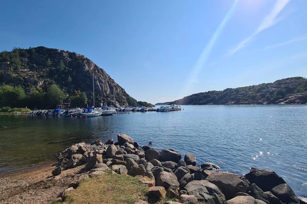 In the summer idyll Kungshamn and in beautiful Knutsvik, this cozy cottage is located next to the mountain, with lovely lawn and in direct connection to forest with mountains. Ideal for families with children who love to go on a journey of discovery. The cottage has a private patio at the back with several outdoor groups and pergola. A couple of meters outside on the slope there is a lovely outdoor kitchen with barbecue and bar table for common hanging. There is both electricity and running water for cooking both lunch and dinner. On hot summer days there is also an outdoor shower on the plateau above the cottage. Entrance to the cottage directly adjacent to the terrace which has a spacious hall. To the left is one of the bedrooms which has a double bed, 140 cm. There is also a wardrobe for clothes storage and a TV. Next door is the cottage's bathroom which has a shower, toilet, sink and heated towel rail. Straight ahead is the kitchen, complete with everything needed during the stay and kitchen table for those who are up early and want to grab a sandwich. To the right is the living room at an angle with a large lovely sofa and TV as well as a large dining area for shared meals. There is a single bed 80 cm and in the evenings you can light a cozy fire in the stove or enjoy the crickets playing if the balcony door is open to the terrace. Adjacent to the living room is another bedroom with wardrobe and a single bed, 80 cm. High chair and travel cot available. In the basement there is a freezer and washing machine. At the end of the lawn towards the forest edge is the friggeboden which has two single beds, 90 cm. Here it is popular for the older children to sleep and hang out together. The accommodation is intended for a maximum of 6 people + baby in a travel cot. Youth groups can not book the cottage without the guardian's company during the entire stay. Charging of electric car is available as well as space for friends in motorhomes, both through additions on site. There is also a mooring (2x6m) with a small boathouse and fishing gear that can be booked on site, as well as a loading ramp if you bring your own boat. The cart can be accommodated by the cottage's plot. This will be a popular destination that you will long to return to. Welcome!