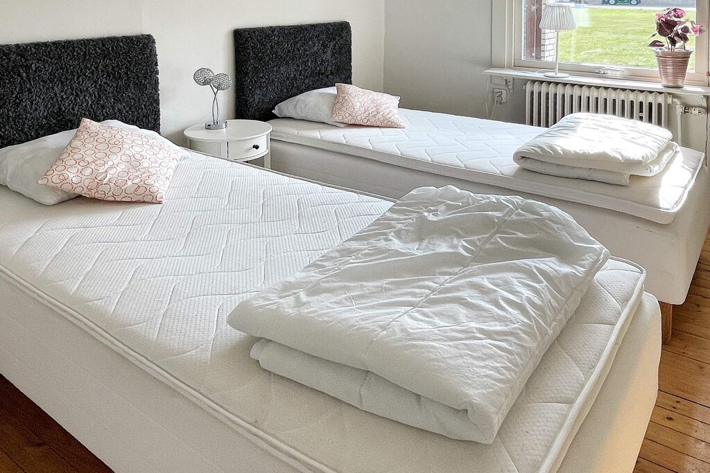 N this country house, you have farms with animal husbandry and crops as your nearest neighbours. There is space for activity and relaxation in the large garden. Several child-friendly beaches in the immediate area and fishing opportunities in the river that flows just outside the house. The house, which is on two levels, has a hall with a beautiful staircase to the upper floor. On the lower level, there is a large and rustic kitchen with all amenities for self-catering and room for many around the dining table. A bedroom with a double bed and a bathroom with toilet, sink and shower. A staircase also leads down to the basement with a washing machine. Another large room with a sofa group in front of the TV for those cozy moments. In the same room there is a drapery screen for three beds, of which a bunk bed and a single bed. On the upper floor also a beautifully furnished hall with sofa group. There is also a desk here for those who want to work during their stay. In the adjacent large bedroom with a total of six beds, the distribution is divided into two bunk beds and two single beds. Upstairs there is another bedroom with a double bed in the room with a balcony. All rooms have a lot of light coming in through many and large windows, which make it nice to live here. So is the bathroom upstairs with both bath, shower and changing table. On the back of the house with wind protection, there is a grill available at both the sofa group and the dining table in an outdoor furniture model, for enjoying meals and shared moments around. Right next door is a farm shop that sells most vegetables you could want such as potatoes, strawberries and cabbage with several varieties. Milk, eggs, and much more can also be found here among the tomato and cucumber crops in the greenhouses. Freshly baked rolls for breakfast can be bought a short walk away at Närliv's shop. A restaurant open in summer with full rights can be found at Norje Boke camping at another child-friendly beach, just over a kilometer away. To the nearby towns of Sölvesborg and Karlshamn, you can take the bus for a shopping tour and sights on site. From Karlshamn, many of the archipelago traffic's boats also go on daily trips out among the islands in Blekinge. Listerlandet is recommended to be discovered either by car or on the bike-friendly roads that are everywhere around here. The beaches with the unusually white sand succeed each other here in the old fishing communities along the coast. Museums, fishing restaurants and a smokehouse for the purchase of fish for later enjoyment are mixed with beautiful and extensive scenery. The Ryssberget nature reserve invites you to take walks in the deciduous and mushroom forests. Welcome to Blekinge!