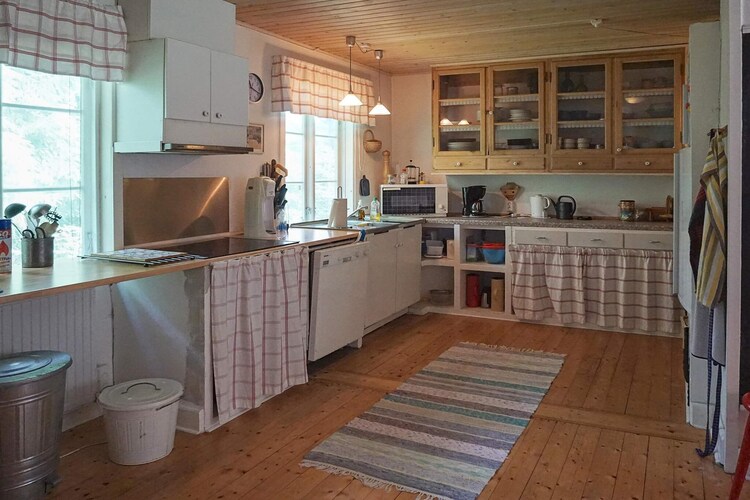 A fantastic spacious house in secluded location but close to the E4 makes this house easy and convenient to reach for the vacationing family or company. The house, which was once an old mission house, is nestled in greenery, and completely separated from neighbors as it is the only house that the small leafy forest road leads to. You are greeted by a large lawn in front of the house that invites you to play and socialize. Here you also park the car (s), so loading and unloading goes incredibly smoothly! To a bathing lake you take five minutes by car, and good parking space is available. Once there you are met by a fantastic well-kept swimming spot, with h-jetty, sandy beach, kiosk and a small playground. There is also a lake for fishing nearby, to which you can easily buy a fishing license! To the left when you enter the house you will find the house's spacious, L-shaped and well equipped kitchen where the whole family / company can stay together at the same time. There is a dining area for everyone without being cramped while preparing meals together. Simply a lot of space to hang out at! From the kitchen you reach the bathroom which is equipped with a practical shower cubicle, and like the kitchen is large. Straight ahead in the hall you are greeted by the stairs up to a large and spacious bedroom which is equipped with a double bed. To the right of the hall you enter the heart of the house, the large hall. Here you can see clear signs that the house was once built to be a mission house! The living room is furnished for socializing and well-being, and even here there is a large table to sit at o eat a good meal together, or why not have an ongoing board game? Due to the fact that there is also a large kitchen table, not everything needs to be removed before every meal! From the living room you reach the other bedroom of the house which is equipped with double bed. You also reach the annex with the stairs up to the other two bedrooms, a room with a small sleeping loft equipped with a 1.40-bed space and a bedroom with another double bed.
