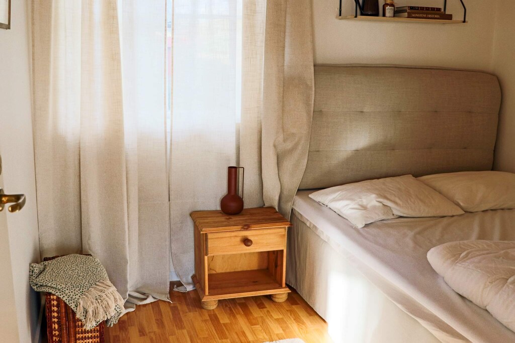 Welcome to a perfect location with only 250 m to the sea and the mile-long sandy beach. The house is very homely and is nestled among other cottages in this summer idyll. Inside, the interior is bright and very homely. In total, this cottage offers seven sleeping places, two of which are in a guest cottage on the plot where there is a bunk bed with a family bed at the bottom, and an 80-bed for extra sleeping. This cozy cottage is located in the idyllic seaside resort of Skummeslövsstrand, which is known for its mile-long beach that awaits you. The beach closest to the house is shallow with a soft and fine sandy bottom and very family-friendly. The kitchen area is bright and the dining kitchen offers most of what you could wish for, there is also a dishwasher. There are three bedrooms in the house. One with a classic double bed of 180 cm. The second with a bunk bed and the third bedroom with a 120-bed. Skummeslövsstrand is a popular seaside resort with a mile-long sandy beach. If you get tired of the sea, there is a swimming pool about 2 km from your accommodation. There is also a kiosk by the pool with lighter meals. On the beach a short distance from the cottage there is a restaurant open in the summer where you can eat a delicious hamburger for lunch and have a cold drink after a dip, or why not let the children go and buy ice cream when the sun is hot. Inside the village there is a small grocery store and cafes, but also a newly opened bistro that serves everything from after-beach lunches to evening dinner with good drinks. If you want more shops, go to Mellbystrand, where there is a large grocery store, and seven km away is the medieval town of Laholm with its cobblestone streets and small shops with local crafts and restaurants. The larger town of Halmstad is about 20 km away and here you can find pretty much everything in the way of shopping. One of Sweden's largest tourist destinations, Gekås in Ullared, is an hour away by car. Don't miss taking the beautiful coastal road there or home as a bonus, follow the brown cultural route signs. Many beautiful beech forests with thousand-year-old paths and remains are only a couple of km from the house, e.g. Osbeck's beech forests. Another recreation and outdoor area you shouldn't miss is Hökafältet in Mellbystrand, where you can hike or jog among spruce forests, sea, beach, beech forests and gravel roads among cows and sheep, all in a blissful and varied mix. There is a lot to do and see here. The house is nice, well-planned and invites you to a nice holiday. Good to know: Company/corporate bookings are not permitted. The cottage is rented out as a holiday home only. Welcome!