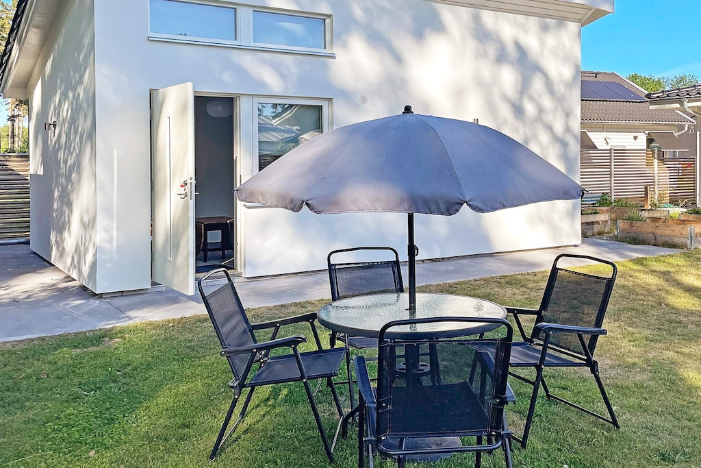 In this brand new well-carved guest house on the owner's plot, you are welcomed to the bright and fresh little accommodation with the proximity to fantastic nature, sea bathing and Sölvesborg's small-town idyll. From the parking lot in front of the right-hand garage door, a paved path along the house wall leads you to your vacation home. On the lawn outside the entrance, there is garden furniture with parasols for lovely shade on the hottest days. The house is large enough for 4 people but has a 120 cm wide sofa bed as an extra bed in the living room where there is also a wall mounted TV with Chromecast. Upstairs is a sleeping loft with a double bed. In the kitchenette, which consists of an induction cooker and microwave, there is also a kettle and toaster available. Bedroom with two single beds inside the kitchen area. The fully tiled bathroom has a spacious shower. In front of the sofa bed is a coffee table with fold-up flaps for a larger table surface. From here you have the perfect starting point to discover all of Blekinge and Skåne's excursion destinations and attractions. By bike or on foot, the easiest way to get to the city center is via the spectacular Sölvesborg bridge, a 760m pedestrian and bicycle bridge, for restaurant visits or shopping. Many beautiful white sand beaches to enjoy the holiday on along the Listerlandet coast. Or why not take the boat from Nogersund out to Hanö, which is a nature reserve with a peculiar nature. For an evening dip from the jetty, you can take just a few minutes to Ohället, which Sölvevikens Båtklubb is called, a real gem where you can also enjoy the sunset over Sölvesborg. The house is cleaned before departure. Welcome!