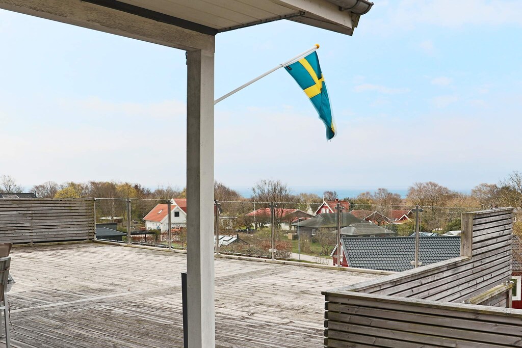 A modern and fresh holiday home in a very good location in beautiful Steninge. The cottage is located high up in a quiet cottage area with a lovely view of the roaring waves of the Kattegatt. The covered balcony and the spacious terrace have both a dining area and comfortable lounge furniture. A short walk takes you to the lovely beach. Steningen's coast is alternately dramatic and beautiful. From the driveway, a long staircase leads you up to the hilly plot. From the entrance at the back of the cottage, there is the hall and a well-equipped bathroom with washing machine. There is a larger bedroom with a double bed and two smaller ones with two single beds each. The heart of the house is the beautiful, spacious living room with a lovely ceiling space and large glass sections overlooking the balcony and the sea. There is comfortable seating, a modern TV and a warming wood stove. Adjacent is a well-equipped kitchen with a dining area. The house has comfortable underfloor heating. There is free wifi. At the back of the house you enjoy your coffee in the morning sun. The spacious balcony and terrace have extendable windbreaks and you can stretch cooling canvases that provide shade on hot summer days. The cottage is not rented out to youth groups. The cottage area is wonderfully scenic with proximity to Stensjöstrand or the bathing area in Steninge. You cannot miss visiting Gösta's restaurant and café or Kuststationen's café. A little to the north you will find the small bathing cove Glassvik. Here there is a fantastically beautiful and peculiar nature and rich birdlife. The small beach is particularly suitable for families with children and those who want some peace and quiet. Just to the south is the community of Haverdal. Pay a visit to Särdal's mill, which has both a café and a shop. Halmstad is only a short drive away. Here there is a large range of entertainment with many restaurants, cafes and a large selection of shops, art and nature. Experience Tylösand's vibrant bathing and entertainment life. Hike on Prince Bertil's path from Halmstad Castle to Ricardo's ice cream café in Möllegård. For those interested in golf, there are a number of golf courses in the immediate area. The summer town of Falkenberg is also a short drive away. There are many nice little cafes, restaurants and shops here.