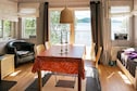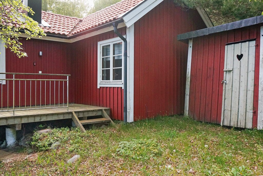 Cottage by the lake with private location, own beach and miles of lake views! Welcome to a uniquely located cottage right on the beach next to it mile-wide and easily paddled lake and the water system Bullaresjöarna. The cottage is located privately and scenically and has its own beach where you can take your evening or morning dip. On the plot there is an aluminum boat with associated oars that you freely tends to, for example, with a little luck fish up the dinner in form of perch or pike (Fishing license required) or to row to the sandy beach a few hundred meters away. A nice terrace surrounds the house on three sides and by the shore there is another small terrace to enjoy the lake view from. For those who want to have your own canoe, this cabin is an excellent choice and for those who like nature experiences, there is plenty of both untouched nature and rich wildlife, do not forget the camera ! In late summer and autumn there are both berries and fungi in the forests. The cottage has an open floor plan with a cozy kitchen and living room with large patio doors out to the lake and the patio where you can enjoy good meals and drinks in addition. The living area also has a wood burning stove, which can be nice to use if the evening would be cold. The two bedrooms are comfortable beds so you will wake up really rested. Shower and washbasin are in the cottage while the toilet (electric toilet Cinderella) is located in its own building next to the cottage. The cottage is located in a slope down to the lake. In the area there are various excursion destinations such as Älgafallet, a magnificent waterfall with 46 m height, well worth a visit. The river above the fall forms the border itself between Sweden and Norway. Take a ride (about 45 km) over the border to Norway and Halden for a visit to Fredriksten's fortress. Strömstad (approx. 30 km) a town by the sea with a large selection of activities during the summer, rich restaurant life, nice shopping in small stores that are close to each other and you feel a salty cooling dip in the summer heat is the short distance to rocks, sea and bathing boat out to one of the islands in the Strömstad archipelago. It is also possible from Strömstad ferry out to the Koster Islands, Sweden's westernmost islands with a resident population. Welcome!