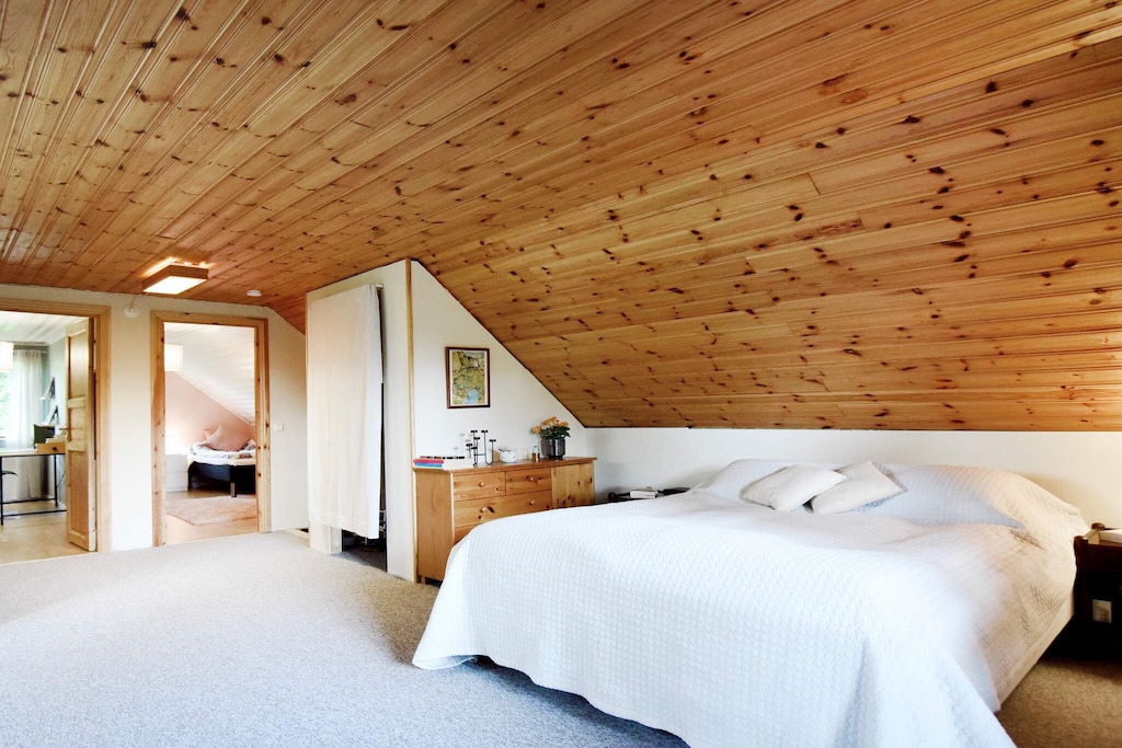 In the heart of the forest of "Värmland" lies the community Lekvattnet. This place is characterized by the wings of culture and with the big forest and the water just inside the village. There are fantastic hiking trails, mushrooms and berry forests, plenty of opportunities for fishing and wilderness adventure. About 300 meters from the lake at an altitude is this fresh house, built in 1984 and with extensive renovation in 2020 With its four bedrooms, of which two with double beds, and with generous areas for living together, this is a really airy and fresh accommodation for a few weeks holiday. Generous covered roof and master bedroom with private balcony. Large open kitchen with separate wall-oven and microwave. It is possible to swim in the lake below the house but if you want it right there is "Pägertjärn" offers a very well prepared bath and fishing camp 2.8 km from the house. Free fishing for children, otherwise the fishing license applies The house lacks wifi and fiber but channels 1 & 2 as well as the children's channel are on TV. When it comes to telephony, it is currently best coverage with Telia subscriptions. In the village there is a "Homestead" where there is, among other things, a collective laundry room where you can book yourself. The local shop is open for a certain part of the summer, but Torsby is only 25 km away and there is all the variety you can wish for in the form of shops and eateries. With about 6,2 miles (1 swedish mile) to the Norwegian border and with a few 100 meters to the magnificent scenery, this is a great place to have as a base for their exploration trips but also to just be "home" and enjoy life.