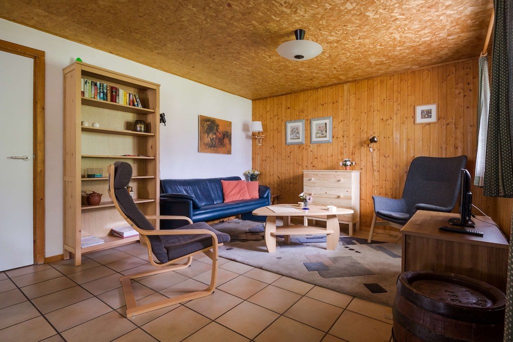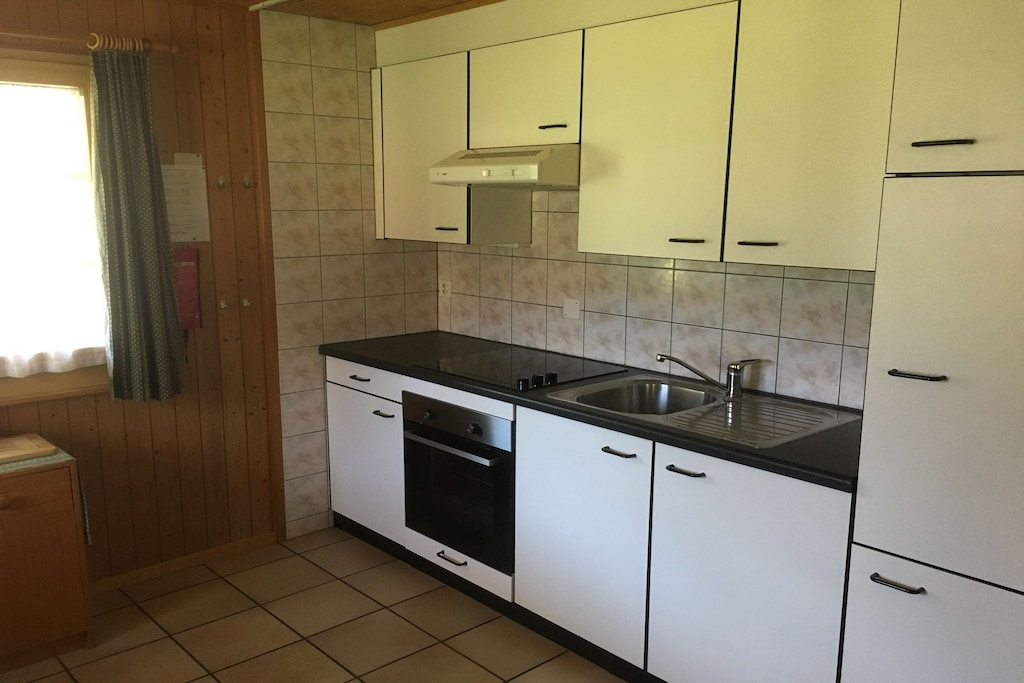 The apartment is on flat ground and parking is possible right in front. Enjoy the cozy heating and spend the evenings in the living room with movies and music. There is a terrace and furnished garden with a stunning view of the Swiss Alps. 1 pet is allowed to stay. You can keep essentials in the storage. Parking and free WiFi are provided.