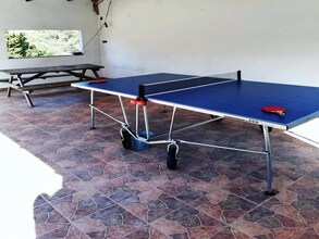 This holiday farmhouse is divided into 3 apartments, each with a separate entrance. There is a common area on the ground level with a hall and a large dining room with a fireplace, where guests from the three apartments can meet if they want. The entrance to each of the apartments is on the landing at the top of the stairs.